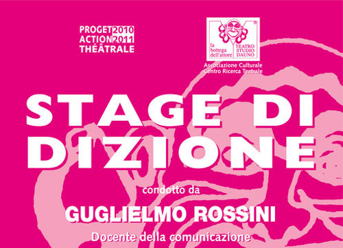 Presentazione laboratorio teatrale (ammessi massimo 25 aderenti che avranno superato la selezione) e stage di dizione (si accede senza alcuna selezione) 2010/2011 giovedì 7 ottobre nella Sala conferenze S. Elena di Foggia. Destinatari e obiettivi  Continua >>