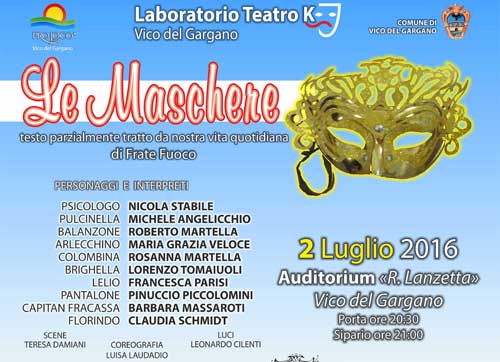 Il saluto del 16° Laboratorio del Teatro K, diretto da Massimo Montagano. Presentazione di due lavori che gli allievi porteranno in scena nei primi giorni di luglio. Sabato 2, nell’Auditorium comunale “Raffaele Lanzetta”  Continua >>