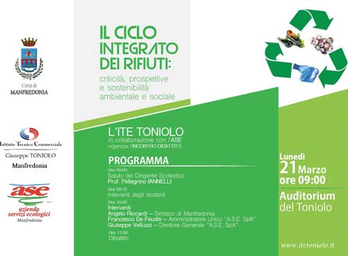 Ciclo Integrato rifiuti: criticità, prospettive e sostenibilità ambientale e sociale. Lunedì 21, Ase e Comune incontrano alunni del “Toniolo” impegnati nel progetto “Cittadinanza e Costituzione-Azione Rifiuti: raccolta differenziata a scuola”  Continua >>
