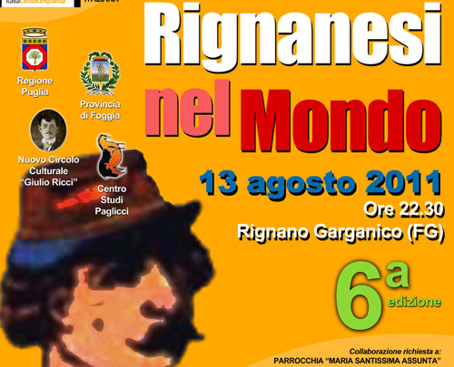 Il prossimo 13 agosto, sesta edizione del “Premio ai Rignanesi nel Mondo”, dedicato al garibaldino Raffaele De Lillo per commemorare il 150° dell'Unità d'Italia. Tutti i premiati e il programma della notte più culturale dell'anno  Continua >>