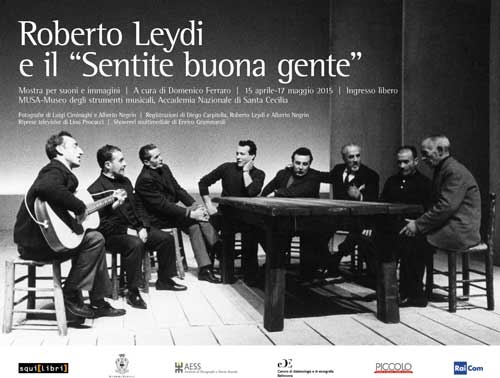Dal 16 aprile al 17 maggio, nell’Auditorium ‘Parco della musica’ di Roma, la mostra multimediale “Roberto Leydi e il Sentite buona gente”, spettacolo del 1967 coi musici-terapeuti del Salento e i Cantori di Carpino, voluto da Grassi e Strehler  Continua >>