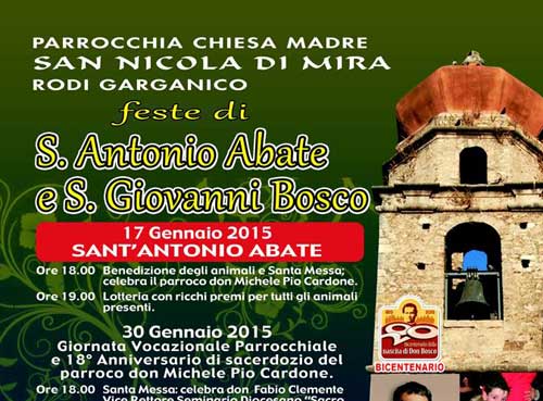 Il 17 gennaio a Rodi Garganico, nella Parrocchia Chiesa Madre San Nicola di Mira, cani gatti cavalli conigli pesci rossi tartarughe canarini galline invaderanno il cortile del tempio. La tradizione si rinnova da quindici anni in qua  Continua >>