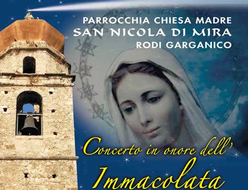 Concerto in onore dell’Immacolata domenica 8 dicembre nella Parrocchia Chiesa Madre San Nicola di Mira a Rodi Garganico nell’ambito del calendario delle festività natalizie. Lo spettacolo si sposterà poi in diverse regioni italiane  Continua >>