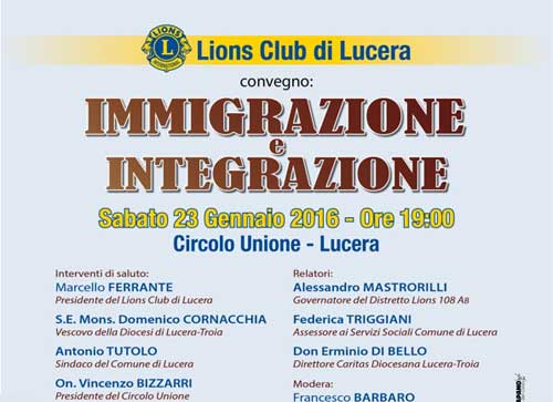 I Lions e i migranti. Si tende a parlarne solo quando accadono gravi fatti che attentano all’ordine pubblico. Bisogna affrontarlo come “Europa”. Incontro sabato 23, al Circolo Unione di Lucera. Proiezione del documentario “leviteaccanto”  Continua >>