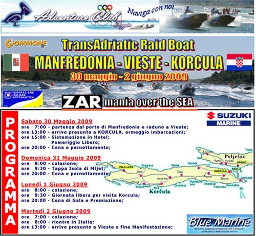 Seconda edizione del “TransAdriatic Raid Boat”, ZAR…mania over the sea, dalla garganica Manfredonia aalla croata Korcula. Sono pochi gli uomini che possano dare del “tu” al Mare... E quei pochi non glielo danno...  Continua >>