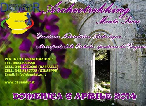 L’Associazione Daunia Tur di Manfredonia programma per domenica 6 aprile una mattinata fantastica attraverso il territorio dello Sperone, da Monte Sacro all’Abazia S.S. Trinità, al suggestivo spettacolo delle delicate orchidee garganiche  Continua >>