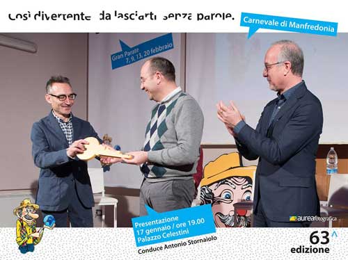 Al via la 63ª edizione del Carnevale di Manfredonia. Presentato il programma ufficiale nella serata-spettacolo di domenica 17 svoltasi nell’Auditorium “Cristianziano Serricchio” di Palazzo Celestini. Le Grandi Parate il 7, 9, 13 e 20 febbraio  Continua >>