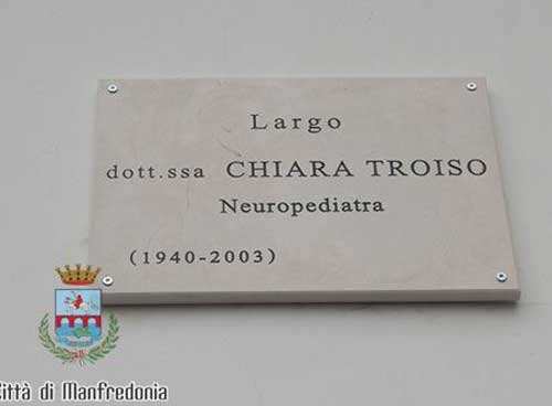 Da oggi, a Manfredonia, “Largo Dottoressa Chiara Troiso”. Intitolato alla pediatra e neuropsichiatra infantile (scomparsa il 2003, a soli 63 anni) il piazzale antistante il Pronto Soccorso dell’Ospedale Civile. Il ricordo del sindaco Angelo Riccardi  Continua >>