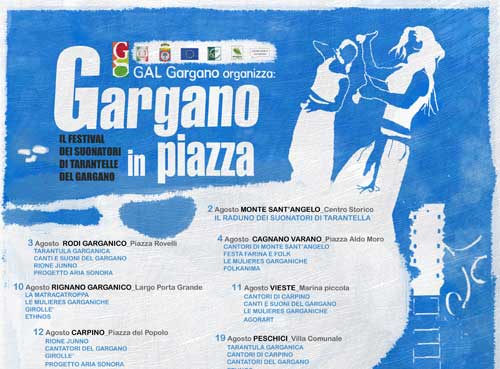 Dal 2 agosto al 6 settembre, Festival itinerante dei Suonatori di Tarantelle, evento voluto da Gal Gargano. Caratterizzerà l’estate sulla Montagna del Sole. Quattordici Comuni coinvolti. Quindici gruppi si alterneranno sui palchi  Continua >>