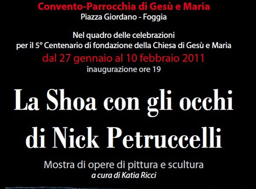 La Shoah vista con gli occhi di un artista. Opere del sammarchese Petruccelli in mostra nella Cripta di San Ciro della Chiesa foggiana di Gesù e Maria dal 27 (Giorno della Memoria) al 10 febbraio per non dimenticare l’olocausto ebraico  Continua >>