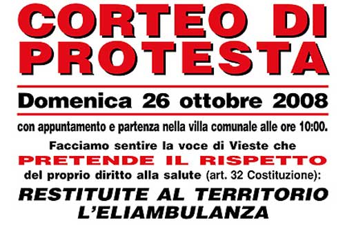 Domenica 26, a Vieste, corteo per rivendicare il diritto alla salute e il ritorno del servizio eliambulanza dismesso dall’11 settembre. Facciamo sentire la nostra voce  Continua >>