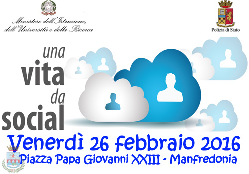 Venerdì 26, a Manfredonia, una delle due tappe pugliesi di “Una Vita da Social”, campagna per diffondere la cultura della legalità in Rete realizzata da Polizia e Ministero Istruzione, partita dal rione di Ponticelli (Na) a settembre 2015. La Scheda  Continua >>