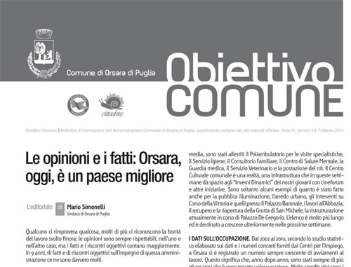 A Orsara è in distribuzione “Obiettivo Comune”, supplemento cartaceo del sito internet. Nelle case dei cittadini orsaresi la newsletter dell’Amministrazione Comunale. A disposizione, su richiesta via email, anche in formato elettronico  Continua >>