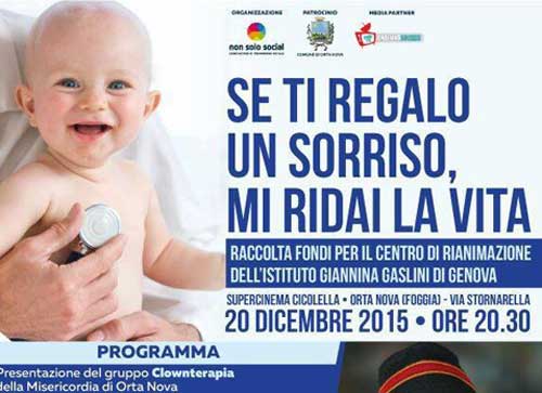 Domenica 20 ottobre, raccolta fondi pro-Gaslini di Genova al CineTeatro Cicolella di Orta Nova. Evento creato per donare un sorriso ai meno fortunati. Il direttore artistico: “L’impegno ripaga di ogni difficoltà legata all’organizzazione”  Continua >>