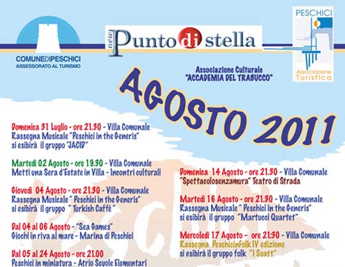 Programma estivo coordinato dalla locale Associazione culturale “Punto di Stella”, col patrocinio del Comune di Peschici e la collaborazione delle associazioni Operatori Turistici e “Accademia del Trabucco”. Un mese da ricordare  Continua >>