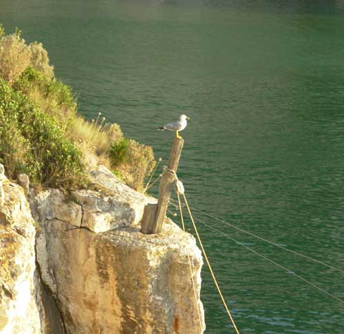 Tutti sanno che quando il trabucco è in funzione, parte integrante (se non rilevante) dell’intera operazione di pesca è una figura chiamata “vedetta”, l’uomo che appollaiato sull’antenna sporgente sul mare grida “Vira, vira!” al passaggio sotto di lui di un branco di cefali, e altro. Il comando mette in movimento gli uomini addetti all’argano e la rete viene su intrappolando i pesci. In questa occasione, l’uomo è stato sostituito... da un gabbiano!