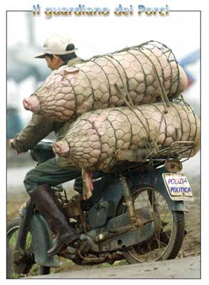 E’ circolata durante la recente campagna elettorale delle politiche e amministrative. Ce l’ha inviata un nostro utente molto assiduo, che invitiamo a inviarcene altre (visto che non si riesce a capire dove le scova). S’intitola: “IL GUARDIANO DEI PORCI” e sulla targa si legge: “POLIZIA POLITICA”. Evitiamo ogni commento e preghiamo cortesemente i nostri visitatori di astenersene! Grazie.