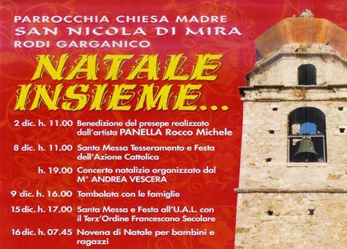 Lettera del parroco e del Consiglio Pastorale alle famiglie rodiane della Chiesa Madre San Nicola di Mira in occasione delle prossime festività. In allegato il programma di “Natale Insieme”, serie di iniziative fra cui il concorso “Presepe Più”  Continua >>