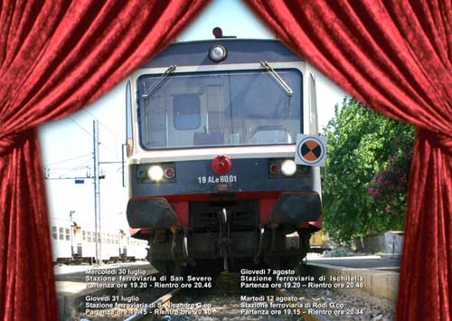Le Ferrovie del Gargano lanciano il treno-teatro dal 29 luglio al 14 agosto sulle nuove carrozze. Poi si vedrà…  Continua >>