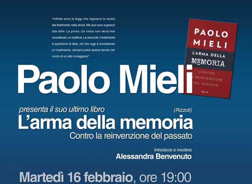 Presentazione del libro di Paolo Mieli martedì 16 febbraio, nell’Auditorium Santa Chiara di Foggia, organizzata dalle Fondazioni “Apulia Felix” e “Banca del Monte”. “La storia è fatta di vinti e vincitori, ma non si tratta di categorie stabili”  Continua >>