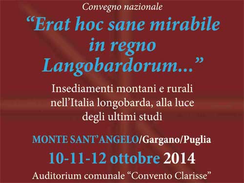 Quaranta docenti di 16 Università italiane al convegno che si terrà nell’Auditorium delle Clarisse della cittadina garganica dal 10 al 12 ottobre su “Insediamenti montani e rurali nell’Italia longobarda, alla luce degli ultimi studi”. Le Schede  Continua >>