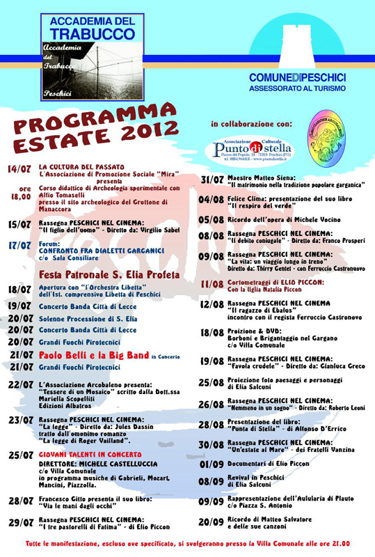 - -- 25/10/2012 -- IL PROGRAMMA DI SPELAION 2012