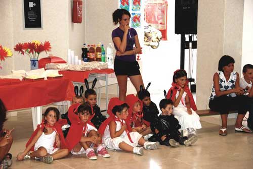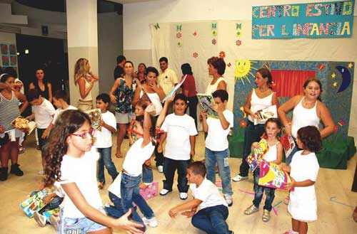 L’iniziativa, nata per lo scorso anno e ripetuta con successo anche questa estate 2008, ha visto impegnate ben quattro maestre educatrici e tre ausiliarie, Teresa, Mariangela, Pina, Angela, Tea, Angelica, Maria (foto 1 sotto) e Rocco a dar manforte e prestare un maggior controllo durante le ore trascorse al mare, una sorta di fratello maggiore dei diciotto bambini (lo scorso anno erano solo dieci), che per i mesi di luglio e agosto hanno fatto rimbombare voci e risate nelle aule e nell’atrio della scuola. La giornata “tipo” prevedeva colazione e mattinata al mare, sulla spiaggia di San Nicola, pranzo a scuola magistralmente preparato da “nonna Giò”, per poi passare a un paio d’ore di riposo nelle ore più calde del pomeriggio ed essere pronti alle attività educative programmate.