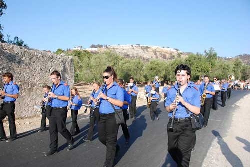 Dapprima voci di paese paventavano una totale assenza di autorità civili e religiose, poi la smentita, infine l’annuncio che la giornata di festa si sarebbe svolta come negli ultimi anni. E così, preceduto dalla Banda cittadina, uno sparuto corteo con alla testa sindaco e parroco (foto 1-2 sotto), è giunto all’interno delle mura del recinto della “moderna” Abbazia di Kàlena (o di quello che ne rimane) per un momento di riflessione. E anche oggi si sono potuti ammirare i segni del tempo che inesorabilmente scavano la pietra e disseccano il legno (foto da 3 a 6), danneggiando sempre più irreparabilmente uno dei monumenti più belli della Montagna del Sole.