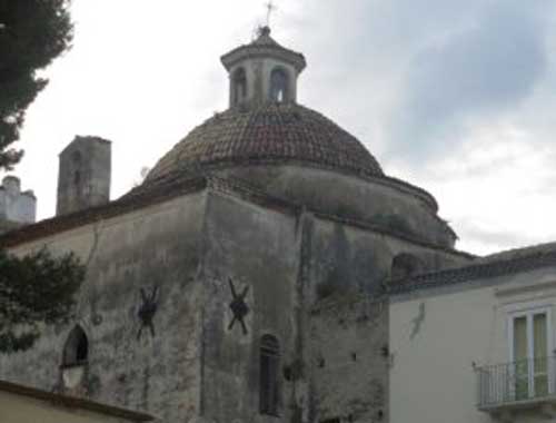 Scendendo dal Castello e risalendo i ripidi e stretti scalini dei vicoli del caratteristico quartiere marinaro del Vuccolo, di probabile origine longobarda (dove un tempo sorgeva la chiesetta di san Michele Arcangelo), i Rotariani si sono soffermati ad ammirare, oltre ai monumentali comignoli, la Chiesa del Crocifisso, edificio chiuso al culto dopo il terremoto del 1995 e da circa un anno transennato per l’ormai imminente restauro (foto 10).