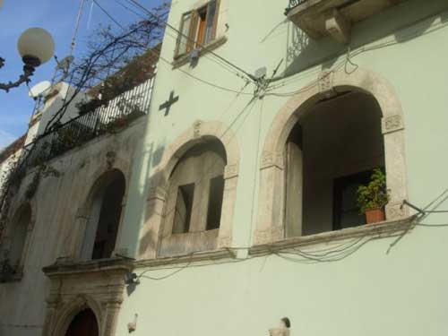 Terminata la visita al Santuario, il percorso è proseguito nelle suggestive viuzze del centro storico, dove sono collocate le principali emergenze architettoniche di Rodi (foto 7-8). L’itinerario ha toccato il primo convento francescano (oggi chiesa di San Pietro e Paolo, quasi sempre chiusa al pubblico), il Belvedere, dove si affaccia la cinta muraria con quel che resta del Castello dei Cavaniglia (foto 9), fino alla torre d’angolo dello Spuntone, la più recente fra le torri d’avvistamento (probabilmente del 1535) costruite da Pietro di Toledo, viceré di Napoli, per difendere il centro abitato dagli attacchi turchi. Da questa struttura si potevano vedere le torri di Monte Pucci e San Menaio, e dal lato opposto la Torre di Calarossa, nei pressi di Torre Mileto.