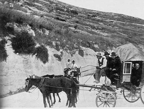 Lo scrittore, la mattina dopo, apre le finestre, vede che il tempo è orribile, con forti raffiche di pioggia e nevischio. Ma non importa. La carrozza è già ferma davanti all’albergo e dopo una “detestabile parvenza di prima colazione”, il viaggio inizia, lungo il tracciato carrozzabile per Monte Sant’Angelo (foto 1 sotto, autore Beltramelli). Durante la salita dei ventuno tornanti, Douglas cerca di immaginare i principi normanni, gli imperatori, i pontefici e i tanti pellegrini celebri che si sono arrampicati scalzi e penitenti per quei pendii rocciosi, sotto la neve. Fu messa a dura prova persino la pazienza di San Francesco, quando effettuò l’ascesa al Sacro Monte. Il fraticello d'Assisi, secondo il Pontano, fece anche qui, en passant, un piccolo miracolo.