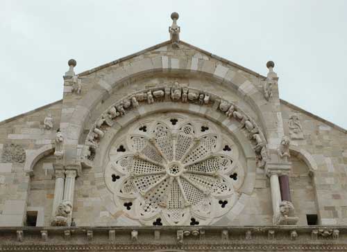 Clicca per Ingrandire Lavoriamo tutti per riuscire ad annoverare il santuario di Monte Sant’Angelo, “il tempio dell’Arcangelo Guerriero, ultimo avamposto dell’Europa cristiana”, lungo le propaggini francigene del Sud e autentico ‘finis terrae’ dei cammini verso Gerusalemme” (A. Paolucci), nel patrimonio dell’Umanità riconosciuto dall’Unesco. Ma i tempi sono maturi per aprire il protocollo e intraprendere il percorso di sostegno anche al riconoscimento, nello stesso patrimonio, del magnifico e singolare “Rosone” della Cattedrale di Troia (foto del titolo e nella foto 1 sotto, di Alberto Conte, incastonato nella sua Cattedrale; ndr).