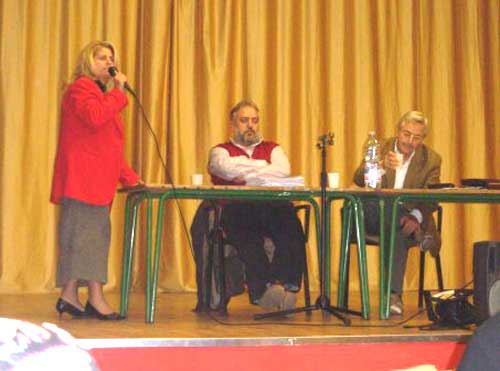 Clicca per Ingrandire Assemblea sindacale partecipata da numerosi docenti e personale ATA delle scuole di ogni ordine e grado del Gargano Nord quella indetta stamane dalla Flc Cgil e dalla Cisl nell’Auditorium di Vico del Gargano, per denunciare la cosiddetta “Riforma Gelmini”. Maurizio Carmeno (a sin. nella foto del titolo; ndr), segretario generale della FLC CGIL provinciale, e Domenico Anzivino (a destra), della Cisl Scuola di Foggia, hanno espresso con forza il proprio dissenso e la grande preoccupazione per la sorte della scuola pubblica, in vista dei pesanti tagli agli organici inferti dalla finanziaria del Governo Berlusconi.