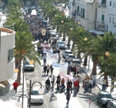 Clicca per Ingrandire I cittadini di Vieste non hanno disatteso le speranze e sono scesi in piazza numerosi per partecipare al corteo e chiedere il ripristino del servizio di eliambulanza. Domenica scorsa, 26 ottobre, in una bella giornata di sole, viestani di tutte le età, dai ragazzi ai più anziani, si sono messi in fila per il corteo che è partito subito dopo le 10 dai giardini pubblici di Corso Fazzini.