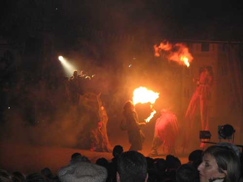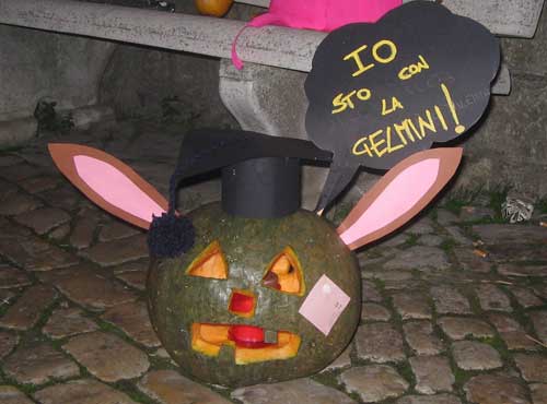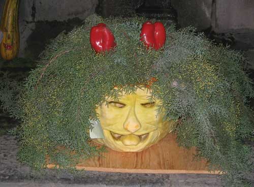 Piccola nota curiosa: nel concorso delle “cocce priatorije” più belle, la “sezione innovazione” se l’è aggiudicata la zucca dedicata a Mariastella Gelmini (foto del titolo; ndr). Tra zucche (foto 1, zucca-bacco, e 3, zucca-befana, sotto), mangiafuoco (foto 2), musica e balli, falò e pietanze tipiche, la festa ha acceso la notte di Orsara fino all’alba, con macchine fotografiche e videocamere a immortalare i mille magici momenti di una tra le edizioni più riuscite e affollate dei “Fuca coste e cocce priatorje”.