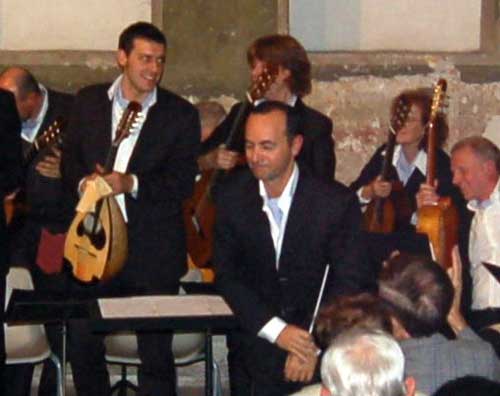Il giovane uomo (ha solo 40 anni), nativo di una terra prodiga di bellezze e componenti paesaggistiche da sogno ma anche di “intelligenze” costrette a cercare altrove approvazione e consensi, ha vissuto di recente una serata fantastica per l'Autunno Musicale della veneziana Ca’ Rezzonico “mandolinando” musiche di Donizetti, Barbella, Burgmueller e Paganini con l’Orchestra da Camera di Caserta (foto 2 sotto, la locandina). Oggi possiamo goderne le sonorità nel VIDEO DELLA SETTIMANA, in cui abbiamo postato le riprese del brano d'esordio del suo ensemble “Guitar Mandolin Orchestra Estudiantina” che si esibisce sotto la sua direzione, in una composizione di Ermenegildo Carosio "Sorriso di Fata", nell'ex Monastero Santa Chiara della bergamasca Martinengo (foto 3 sotto).