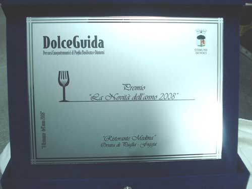 E’ proprio questo il percorso intrapreso da Luigi Inglese (foto 2, in abiti da lavoro) che dal 1995 al 2000 ha lavorato prima all’European Restorant e poi a “Il Panino”, entrambi ristoranti affermati di Boston. Nel 2001, però, Luigi Inglese è tornato a Orsara di Puglia e assieme alla moglie ha inaugurato il proprio ristorante a conduzione familiare (foto 3, una targa al "Medina").