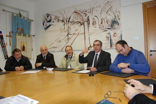 Clicca per Ingrandire Entro due anni Peschici avrà il nuovo istituto! E’ questo in sintesi il messaggio che l’assessore ai lavori pubblici della Provincia di Foggia, Vito Guerrera (foto del titolo, secondo da destra; ndr), ha voluto lanciare con forza durante l’incontro di ieri sera a Peschici. Invitato da Michelino Vecera (foto 1 sotto, accanto a Guerrera), assessore all’Ambiente del Comune di Peschici, in occasione della prima riunione provinciale della Costituente di centro, Vito Guerrera accompagnato da sindaco Vecera (foto 2, a destra), vicesindaco Afferrante e dai professori degli istituti locali Angelo Piemontese e Pasquale De Nittis, ha visitato i locali che attualmente ospitano le classi del Liceo Scientifico toccando con mano le precarie condizioni in cui sono costretti alle lezioni docenti e alunni da quasi dieci anni. Quindi il gruppo s’è trasferito nella sala giunta del Comune per incontrare una delegazione di studenti agguerriti e portatori di domande e richieste per il rappresentante dell’amministrazione provinciale.