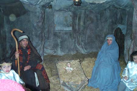 Clicca per Ingrandire Venerdì 26 la famiglia di “inviati per caso” è ripartita per visitare il presepe vivente di Rignano Garganico. Giunto all’undicesima edizione, il giorno di Santo Stefano è stato favorito da una serata fredda ma asciutta. Il benvenuto è dato dagli anziani che accolgono gli ospiti nella palestra della scuola sede espositiva dei lavori degli studenti sul tema del Natale.