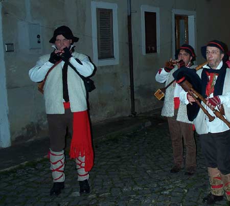 A seguire, incontriamo la venditrice di latte, che ne offre un po’ ai bambini, e la comare che ci invita ad assaggiare le frittelle. Accanto alla Santa Grotta un piccolo ovile nella piazza principale e i pastori che offrono pane arrostito condito con ottimo olio nuovo. Ma c’è anche chi ci offre un po’ di pan cotto o del buon vino color rubino, una minestra di fagioli o la possibilità di assaggiare i formaggi locali.