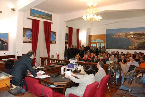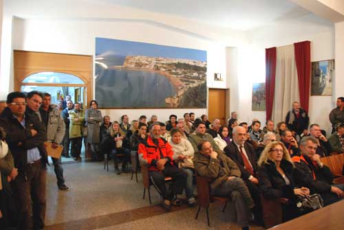 Clicca per Ingrandire Il senso di una comunità solidale esce rafforzato dalla serata d’onore, organizzata dalla peschiciana Associazione Culturale “Punto di Stella”, che il 20 dicembre scorso, in una Sala consiliare del Comune di Peschici gremita all’inverosimile (foto del titolo… e siamo solo all’inizio!), ha visto la consegna dei riconoscimenti nelle giuste mani degli autentici soccorritori i quali, distintisi il famigerato 24 luglio 2007, evitarono al vasto incendio di trasformarsi nell’ecatombe che poteva diventare col concorso delle condizioni agitate del mare.
