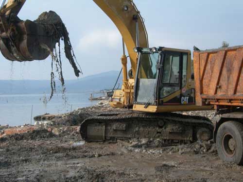 Di fatto, l’intervento di risistemazione e pulizia della strada lungolago ha stravolto il delicato equilibrio costiero, minacciato da sesse, maree, venti e moto ondoso. Sono stati creati nuovi porticcioli affatto funzionali, rimuovendo quelli esistenti. Corposi sbancamenti di materiale allo scopo di allineare la strada, hanno prodotto una riduzione del livello di costa, causando l’inondazione dei terreni, l’erosione e l’impaludamento.