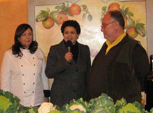 Il noto conduttore e giornalista enogastronomico Edoardo Raspelli (foto del titolo, al centro; ndr), accompagnato dalla troupe dei tecnici, ha effettuato visite alle aziende produttrici di cavolfiore, cavoli broccoli e finocchi, nelle linee di lavorazione dell'Assodaunia. La due giorni in Capitanata sarà trasmessa in una delle prossime puntate di "Melaverde" del mese di febbraio, come di consueto arricchita dalla presentazione delle specialità gastronomiche della nostra provincia preparate all'agriturismo Posta Guevara di Giardinetto-Orsara di Puglia (foto 1 sotto).