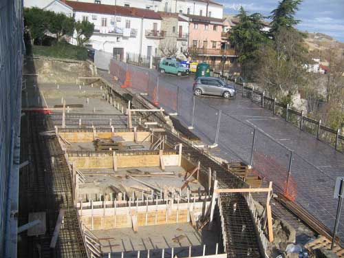 L’ingresso principale al paese, quello cui si accede percorrendo la strada da Lucera, è oggetto di numerosi interventi (foto 2). Dopo il rifacimento di un primo muraglione, anche un secondo tratto della struttura di contenimento è interessato da lavori che hanno il duplice obiettivo di affrontare il dissesto idrogeologico, contenendo i fronti su cui si estendono i movimenti franosi, e di migliorare l’assetto urbanistico e architettonico del borgo (foto 3). Sul nuovo muraglione, il cemento non sarà più visibile poiché verrà coperto dalla pietra e sulla sua facciata, sempre utilizzando la pietra, sarà composto il nome del paese.