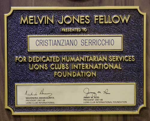 IL SALUTO = La “Melvin Jones Fellow”, massima onorificenza Lions, viene conferita, su proposta del Club, dalla Lions Club International Foundation. Tale riconoscimento, è intitolato alla memoria di Melvin Jones, fondatore del Lions Club International. In quaranta anni d’attività, il nostro Club aveva conferito l’onorificenza, solo una volta, nel 2002, al compianto Mons. Vincenzo D’Addario. Ora siamo davvero orgogliosi che anche queste prestigiose personalità ricevendo questo riconoscimento sono entrate a far parte di quest'ambitissimo gruppo di Lions d’ogni parte del mondo. Desidero innanzi tutto ringraziare Voi per la Vostra partecipazione a questa manifestazione, ed il relativo onore che ci date, perchè di sabato sera, qualcuno quasi certamente avrà sottratto tempo ad attività ludiche o familiari per alcuni, ed altri hanno ritagliato o preferito uno spazio tra i numerosi impegni di lavoro o istituzionali.