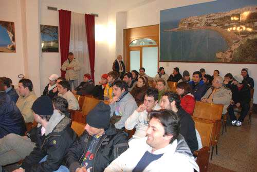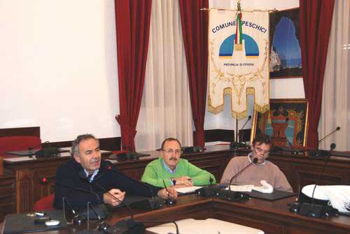 Clicca per Ingrandire Un progetto ancora in embrione, ma con chiari obiettivi da perseguire: prestare il proprio aiuto e rendersi disponibili nelle emergenze. E’ questo in sintesi quanto scaturito dalla riunione tenuta giovedì 12 alle 16 nell’aula consiliare del Comune di Peschici, discretamente affollata (foto del titolo; ndr), per iniziativa dell’assessore all’Ambiente, Michelino Vecera, cui hanno partecipato il responsabile dell’Ufficio Protezione Civile, Massimo D’Adduzio (foto 1 sotto, rispettivamente 1° e 2° da sin,) e il sindaco Domenico Vecera.