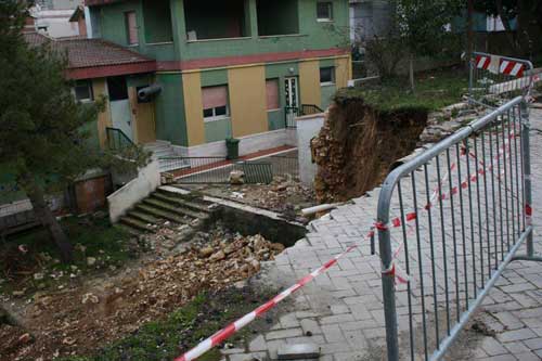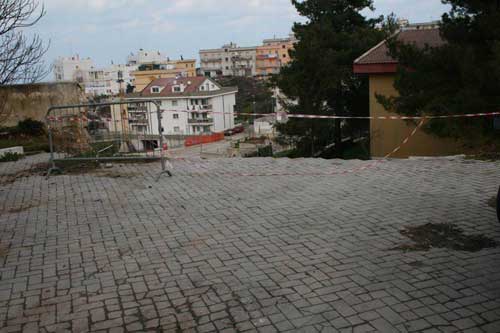 Ma se con fatica l’Amministrazione Comunale è riuscita a ripristinare i numerosi tratturi devastati dalle intemperie, nulla ha potuto (?) per riportare alla normalità il cortile del Pronto Soccorso di proprietà della ASL foggiana. Parlare di normalità, in questi casi, è un complimento. Le foto a corredo (del titolo e sotto; ndr) scattate il 25 febbraio 2009, testimoniano più di ogni testo scritto la pericolosità, la precarietà del luogo e in ultimo, la staticità dell’intero perimetro, proprio vicino a una Scuola Materna pubblica.