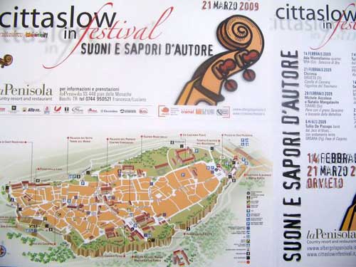 LA SCHEDA di “Cittaslow in Festival–Dinner Music” = L’evento a cui Orsara di Puglia ha partecipato è al suo 11° anno di vita. L’edizione 2009 è cominciata il 14 febbraio e continuerà fino al 21 marzo. Sulla scia della vocazione jazzistica della regione umbra, la manifestazione orvietana coniuga nel segno della creatività le migliori espressioni di musica e cultura enogastronomica, elementi fondamentali di un movimento - quello di Cittaslow - che opera in Italia e nel mondo per valorizzare la qualità della vita in tutte le sue espressioni cominciando dalla salubrità e dal gusto degli alimenti (info: www.cittaslowinfestival.it – www.cittaslow.net)