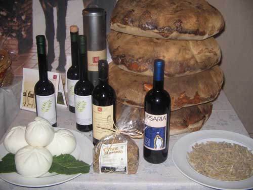I PRODOTTI ORSARESI valorizzati a Orvieto = Nella “Casa del gusto”, lo stand allestito nel centro storico di Orvieto, Orsara di Puglia ha esposto e venduto il paniere completo dei suoi prodotti tipici, a cominciare dal cacio ricotta, formaggio fresco realizzato stagionalmente con latte di capra, ricco di un gusto a cui la tradizionale forma “a pera” dona una particolarità in più per proseguire con miele, salumi, olio, pane e vino. Assieme ai prodotti orsaresi, la “Casa del Gusto” ha valorizzato anche la Fava di Carpino, un presidio slow food che arricchisce lo scrigno di genuinità rappresentato dalla cultura enogastronomica dell’intera provincia foggiana (info: www.orsarainforma.blogspot.com).