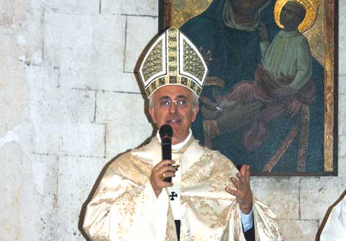 Clicca per Ingrandire Secondo Ignazio Ingrao, che firma i suoi pezzi sul sito di Roberto D’Agostino DAGOSPIA.com - dove la “O” è sostituita da una bombetta con miccia accesa - l’arcivescovo di Manfredonia-Vieste-San Giovanni Rotondo starebbe preparando armi e bagagli per affrontare a breve il probabile trasferimento. Gli sarebbe già arrivata - il condizionale è d’obbligo - comunicazione di quella promozione che nel suo paese natale, Peschici, circola da vari mesi. Destinazione? La stessa che la “vox populi” aveva abbondantemente fatto circolare in tempi più o meno recenti: Lecce.